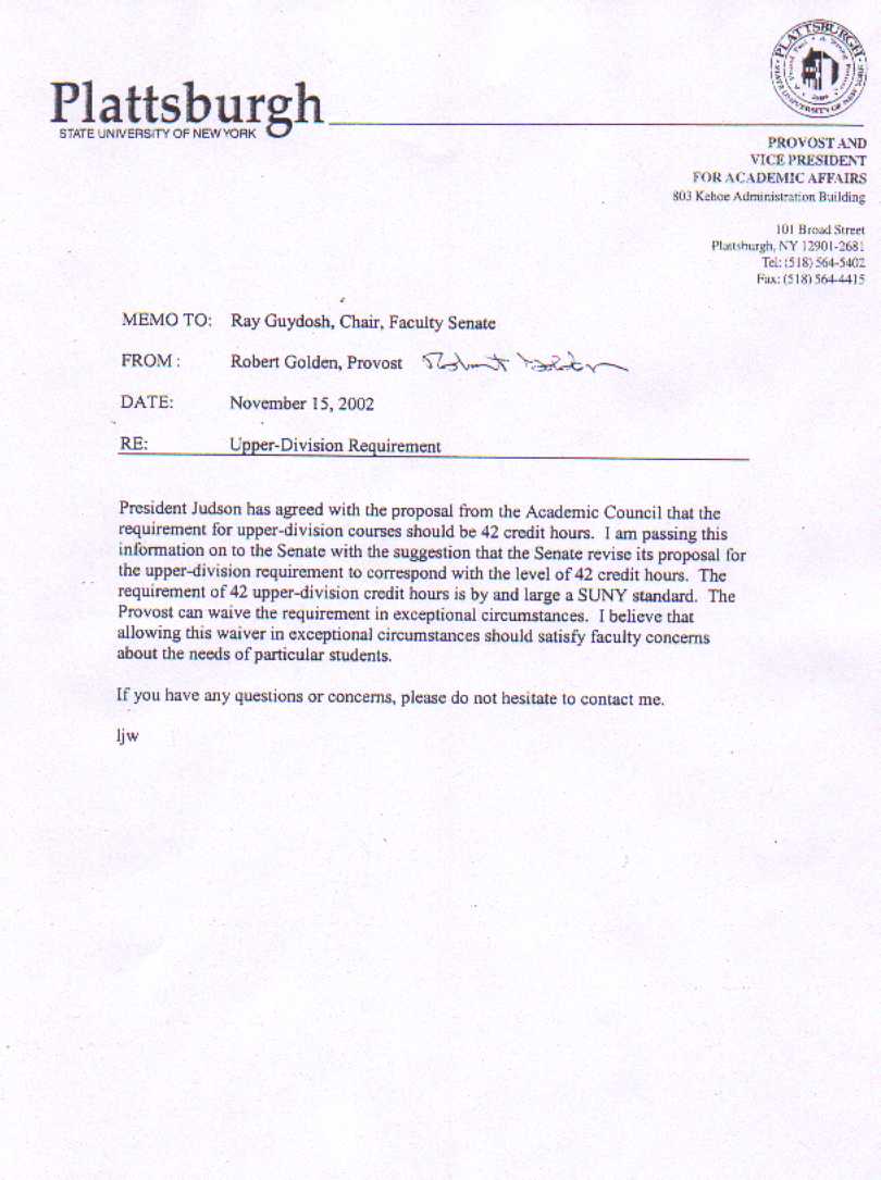 From Provost Golden concerning Upper-Division Requirement